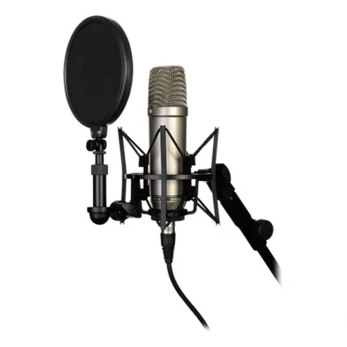 Professional suspension shock mount designed specifically for RΓDE large-diaphragm studio condenser microphones (NT1, NT1-A, K2, NT1000, NT2000, NTK). Completely isolates mechanical noise from stands/booms while detachable dual-axis pop filter eliminates plosives for pristine vocal recordings.